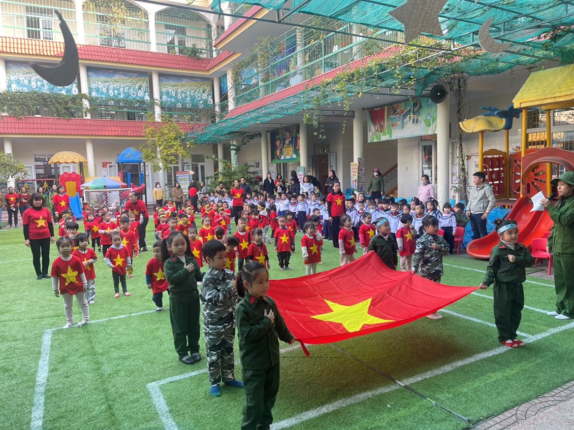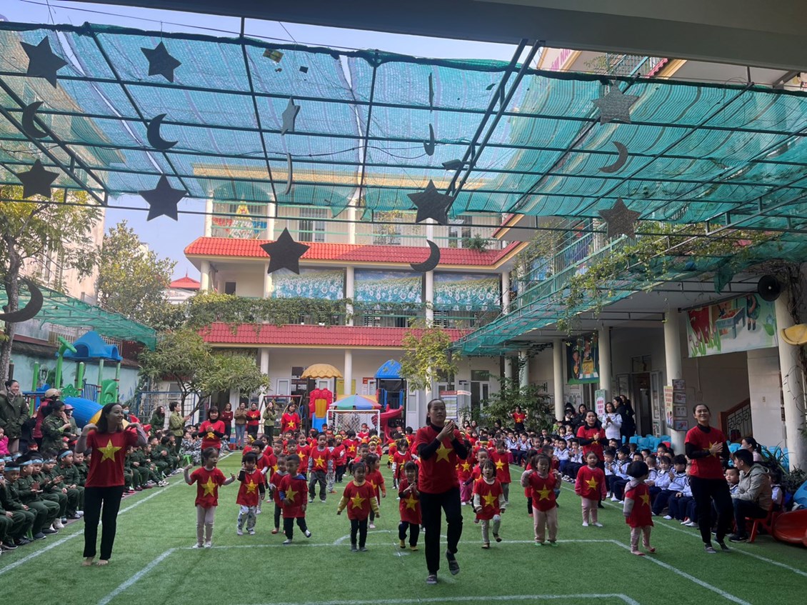 Ngày 22/12 hàng năm là ngày hội truyền thống của cả dân tộc, ghi nhận và tôn vinh những đóng góp to lớn của Quân đội trong sự nghiệp giải phóng toàn dân, xây dựng và bảo vệ vững chắc Tổ quốc Việt Nam. Chúng cháu là những chiến sĩ tý hon xin kính gửi các đồng chí lòng biết ơn sâu sắc nhất qua những màn đồng diễn thật ngộ nghĩnh đáng yêu. . Đó cũng chính là niềm vui, sự phấn khởi hiện lên rõ nét trong từng ánh mắt, từng nụ cười trên môi của các em bé. Qua đó đọng lại trong tâm hồn trẻ thơ là tình yêu đất nước, yêu thương và biết ơn sâu sắc đến các cô chú bộ đội, yêu lịch sử dựng nước và giữ nước hào hùng của dân tộc.