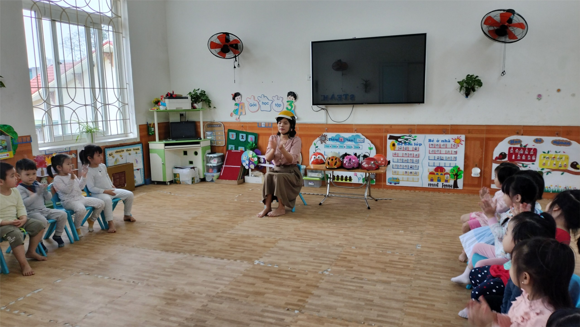 Trong giờ học về chủ đề "Giao thông" hôm nay, các bé lớp 3 tuổi A đã được cô giáo hướng dẫn cách cài và đóng mũ bảo hiểm.